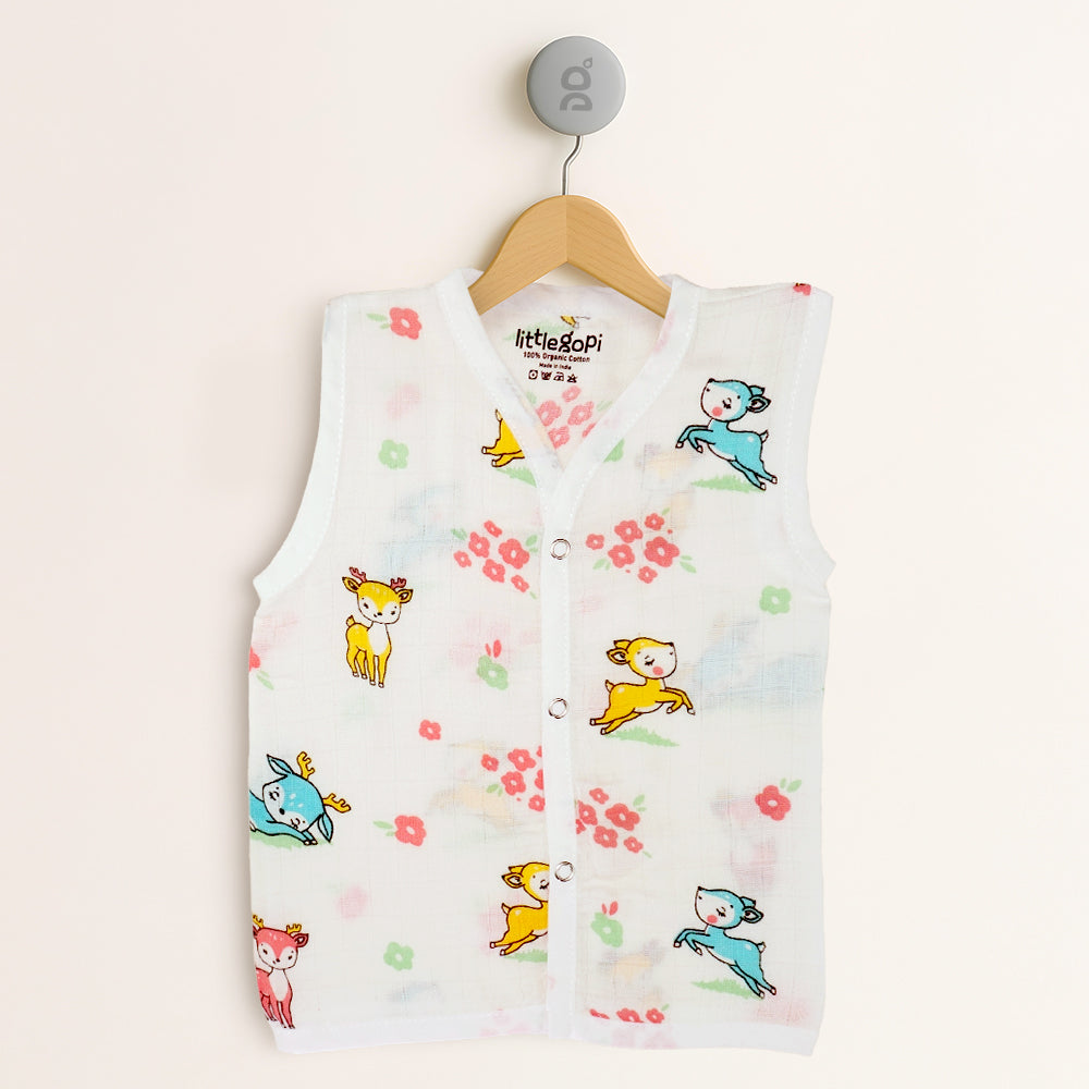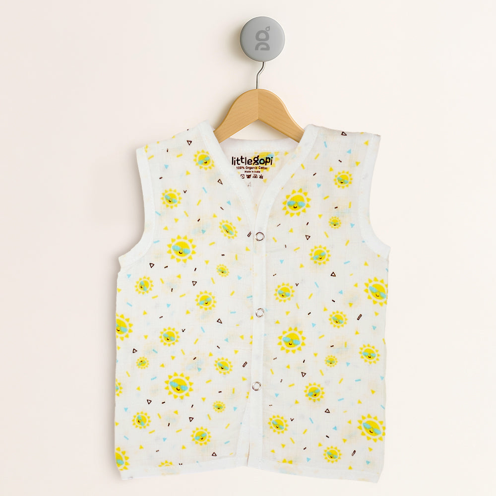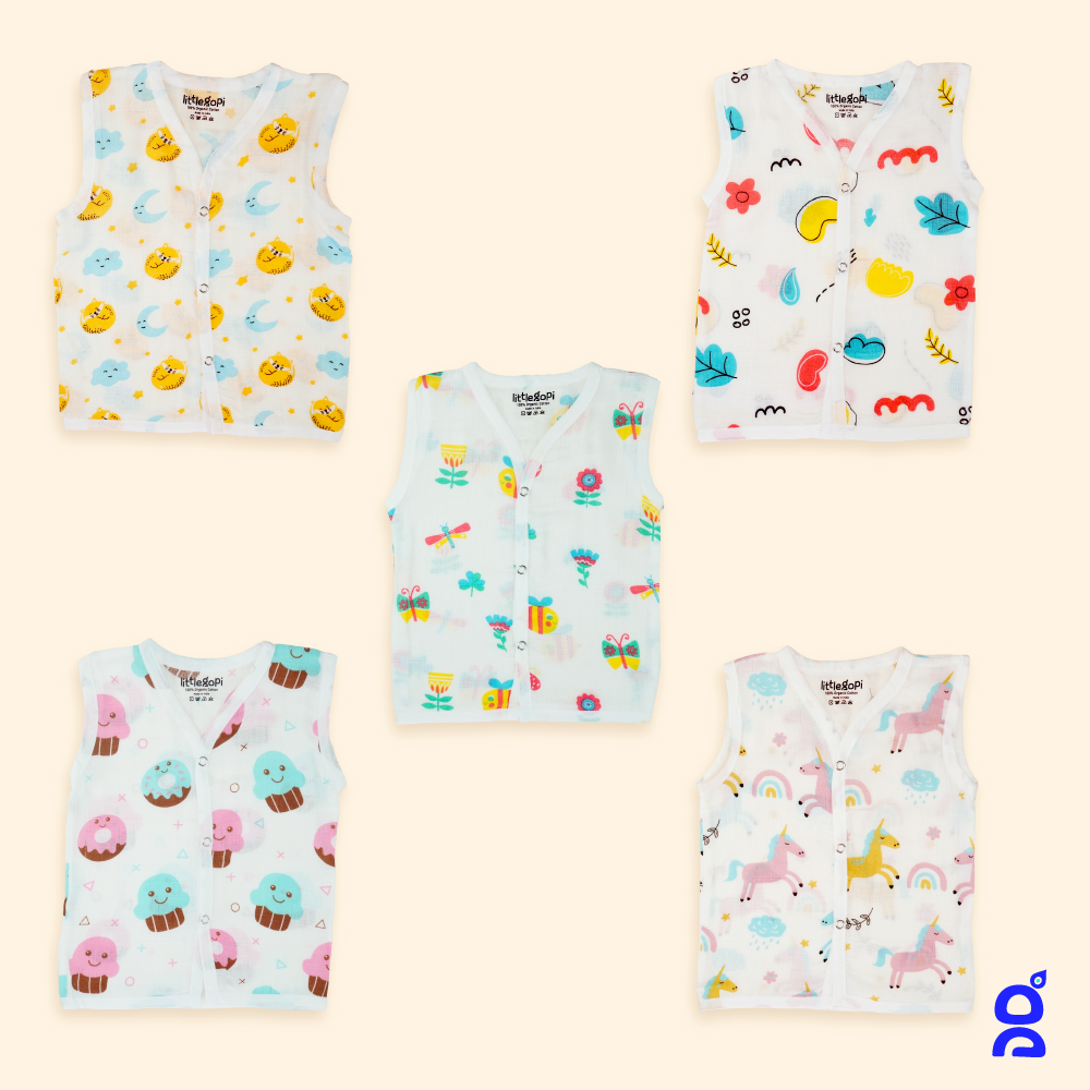Discover ultimate comfort for your little one with this premium muslin cotton button jabla set from Little Gopi. This pack includes sleeveless vests crafted from pure muslin cotton, making it perfect for your baby's delicate skin. The jabla features a convenient button-front design for easy dressing and comes in assorted prints with charming patterns. These jablas are specially designed for the Indian climate, keeping your baby cool and comfortable during summer months. The breathable fabric and relaxed fit ensure unrestricted movement for active babies. Each jabla is thoughtfully crafted in India using 100% organic muslin cotton that's soft against baby's skin. The versatile design works well as a standalone wear during warmer days. The practical button closure makes changing time hassle-free for parents. Available in a variety of cute prints and patterns, these jablas are suitable for both boys and girls. Hand wash recommended to maintain fabric quality.