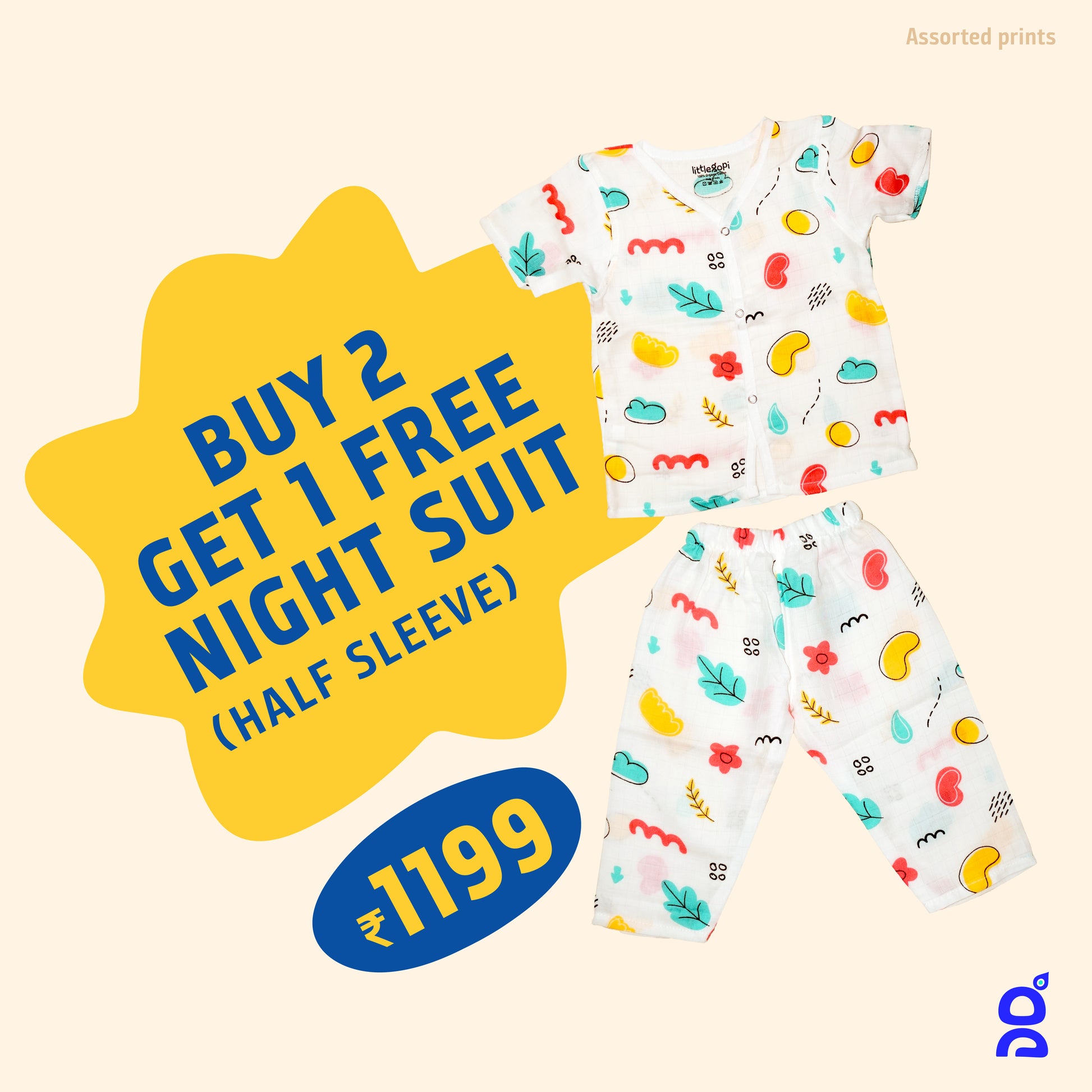 BUY 2 GET 1 FREE | Organic Muslin Sleepsuit Combo Pack of 2 (Half Sleeve)
