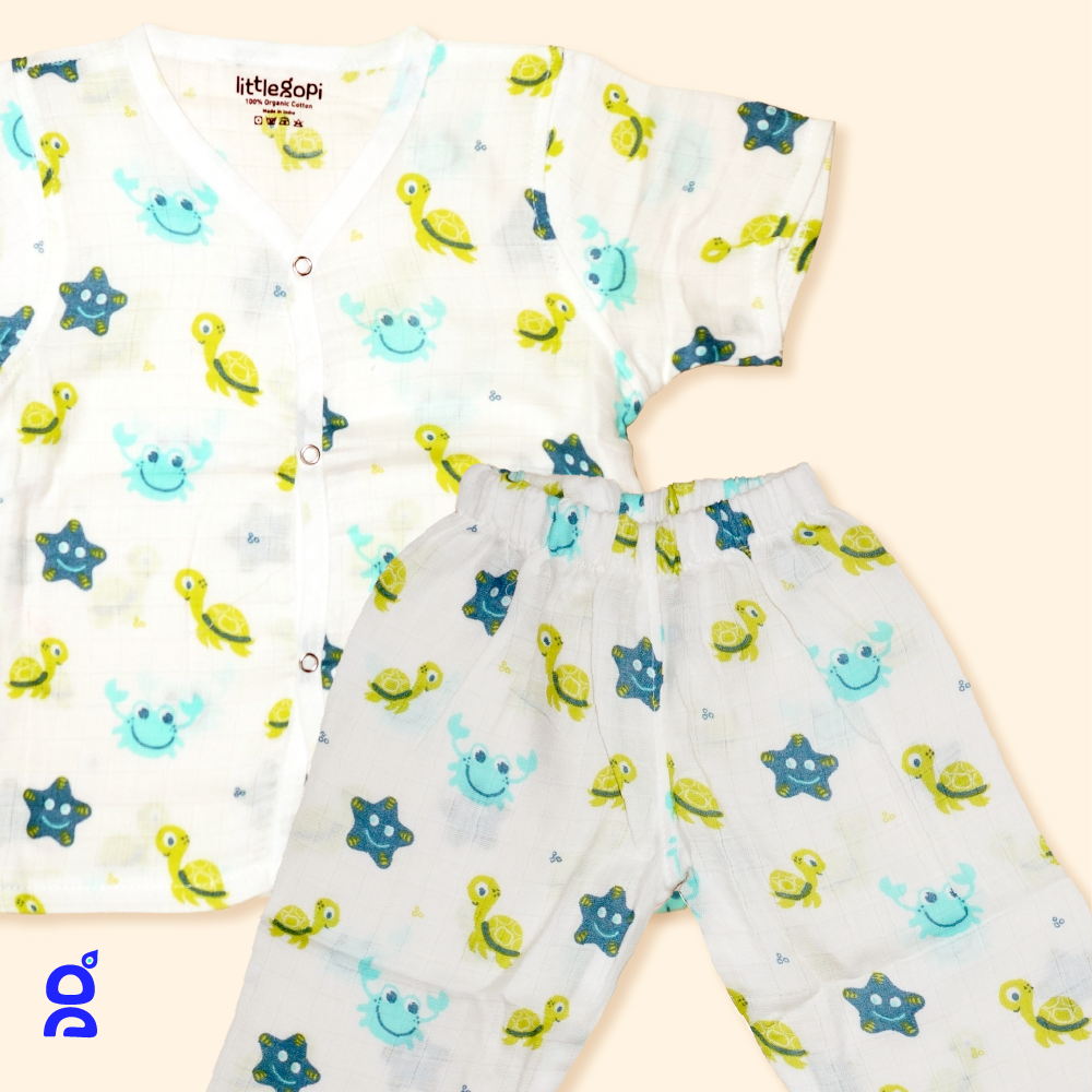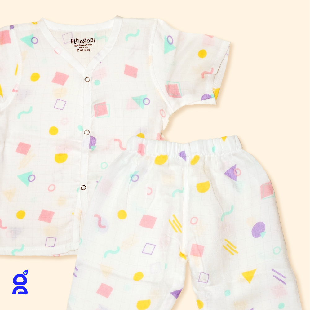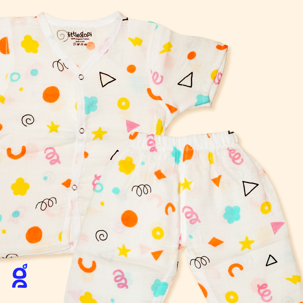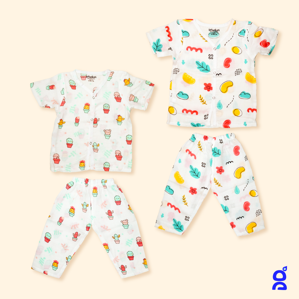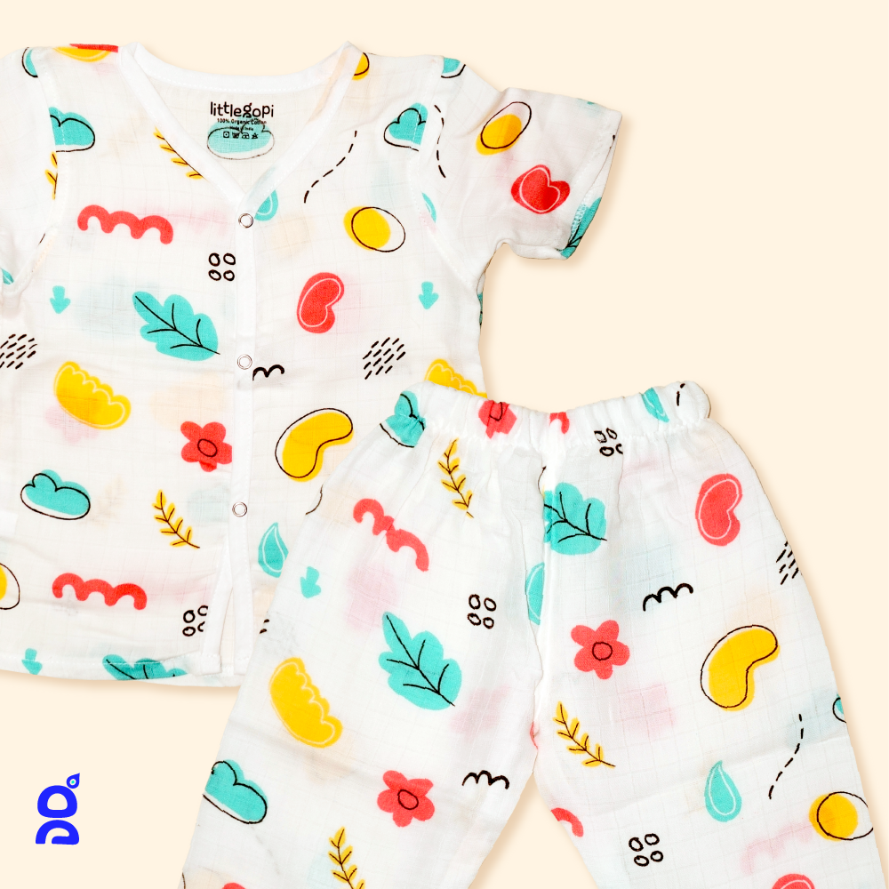 LITTLE GOPI - GOTS Certified Premium 100% Organic Muslin Cotton Sleepsuit Combo Pack of 2 | Assorted Prints | Half Sleeve