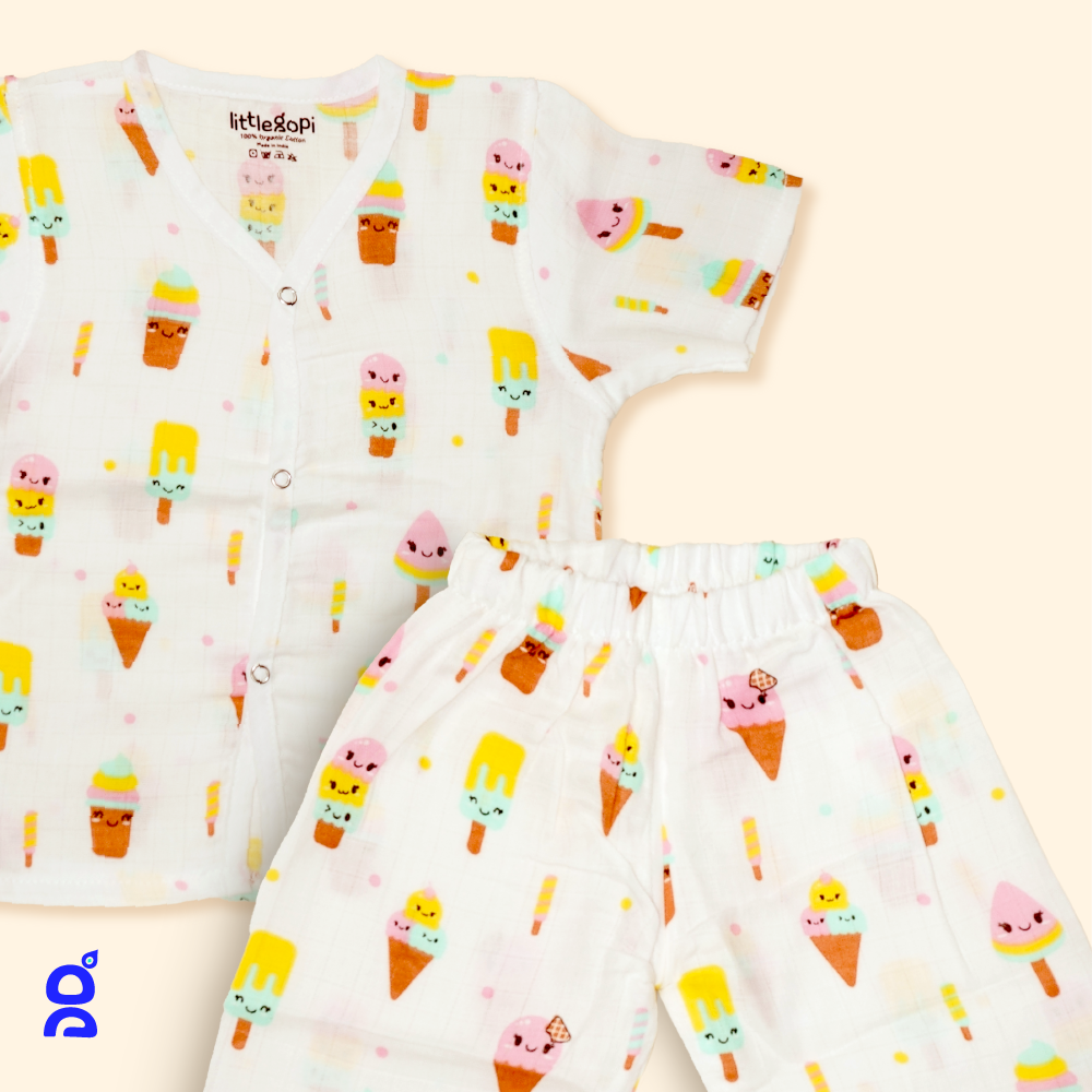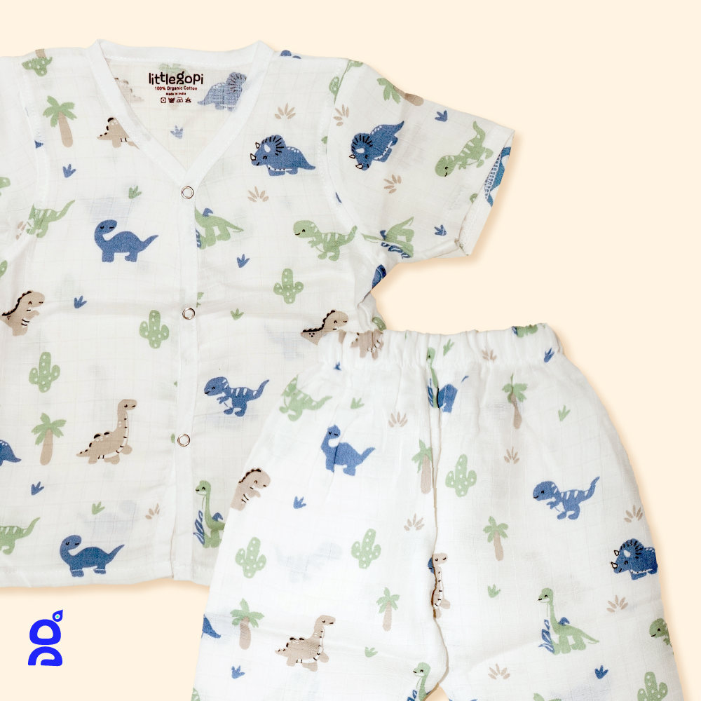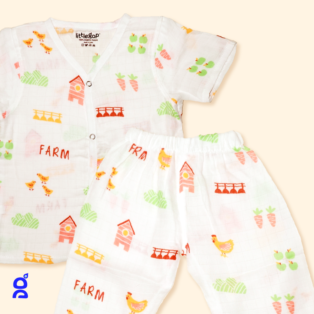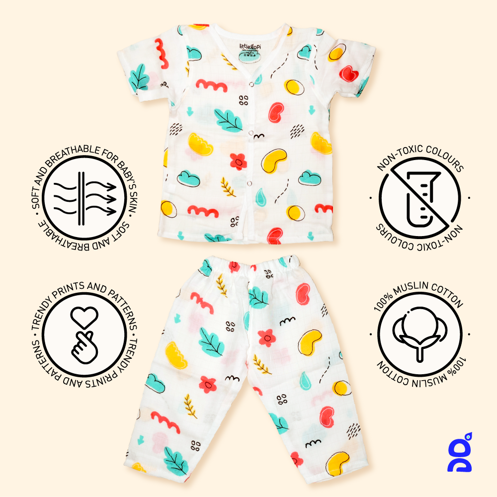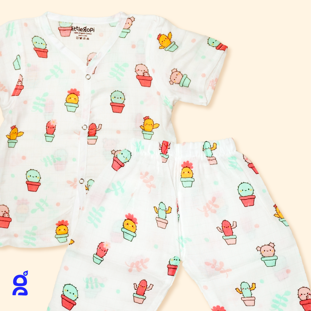 LITTLE GOPI - GOTS Certified Premium 100% Organic Muslin Cotton Sleepsuit Combo Pack of 2 | Assorted Prints | Half Sleeve
