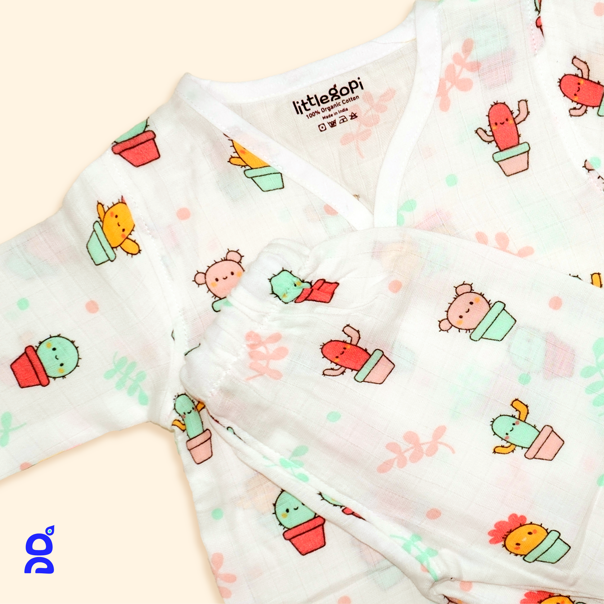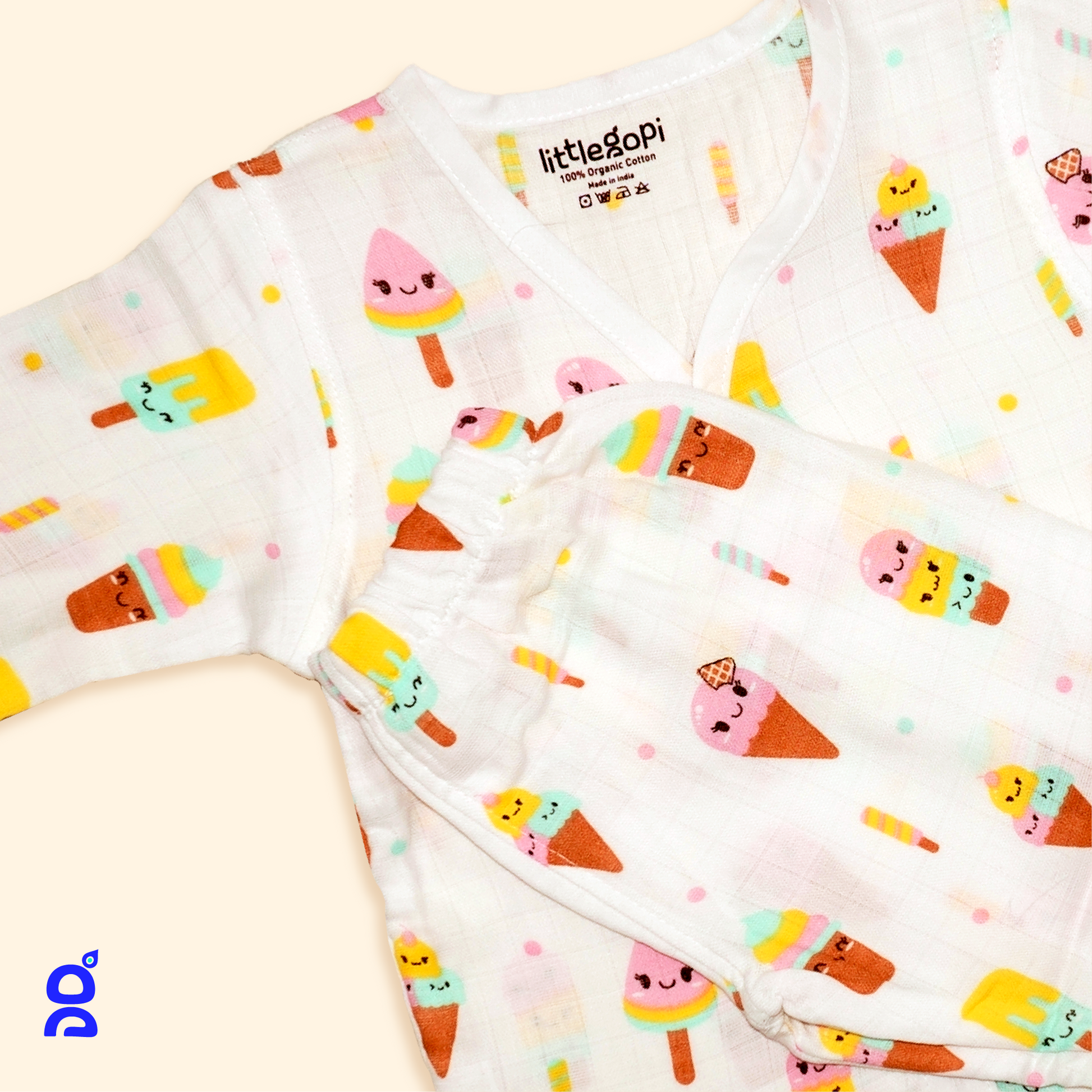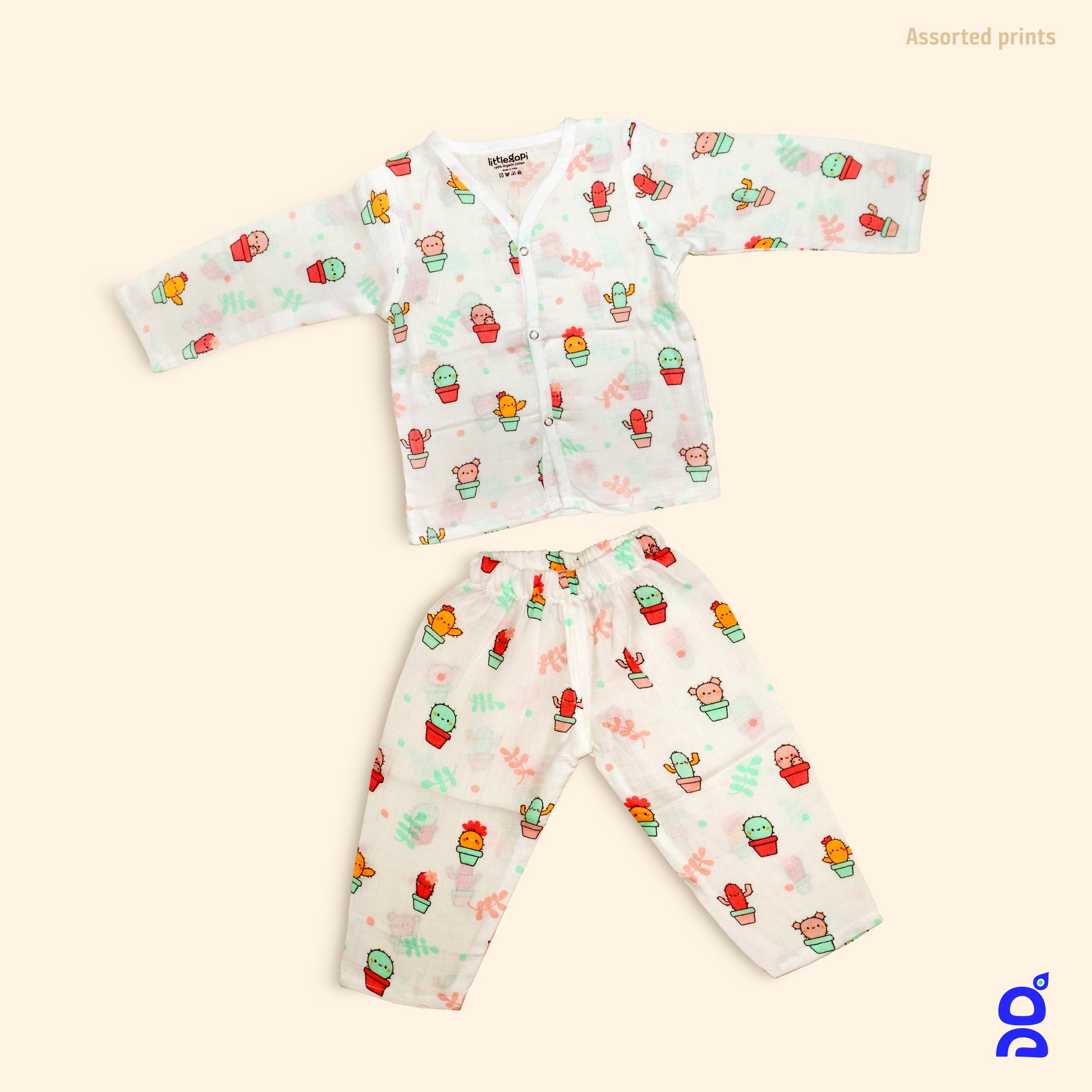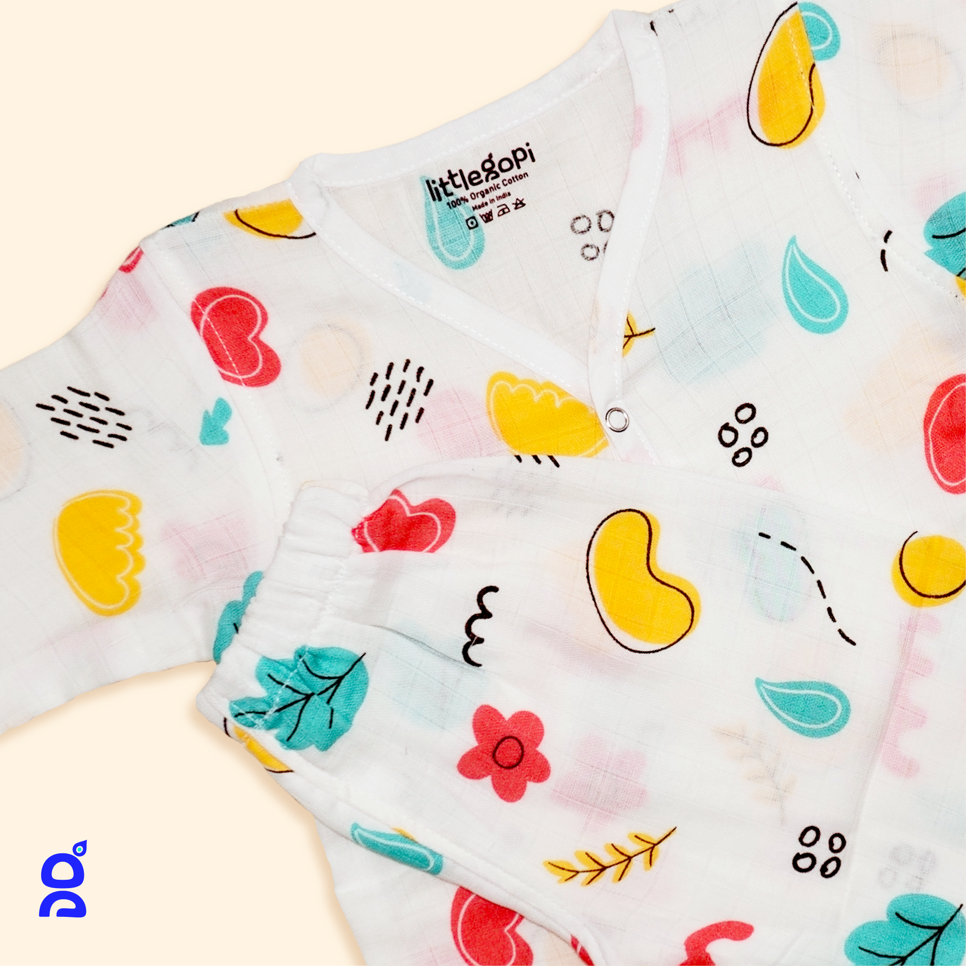 LITTLE GOPI - GOTS Certified Premium 100% Organic Muslin Cotton Sleep-suit Pack of 1 | Assorted Prints | Full Sleeve